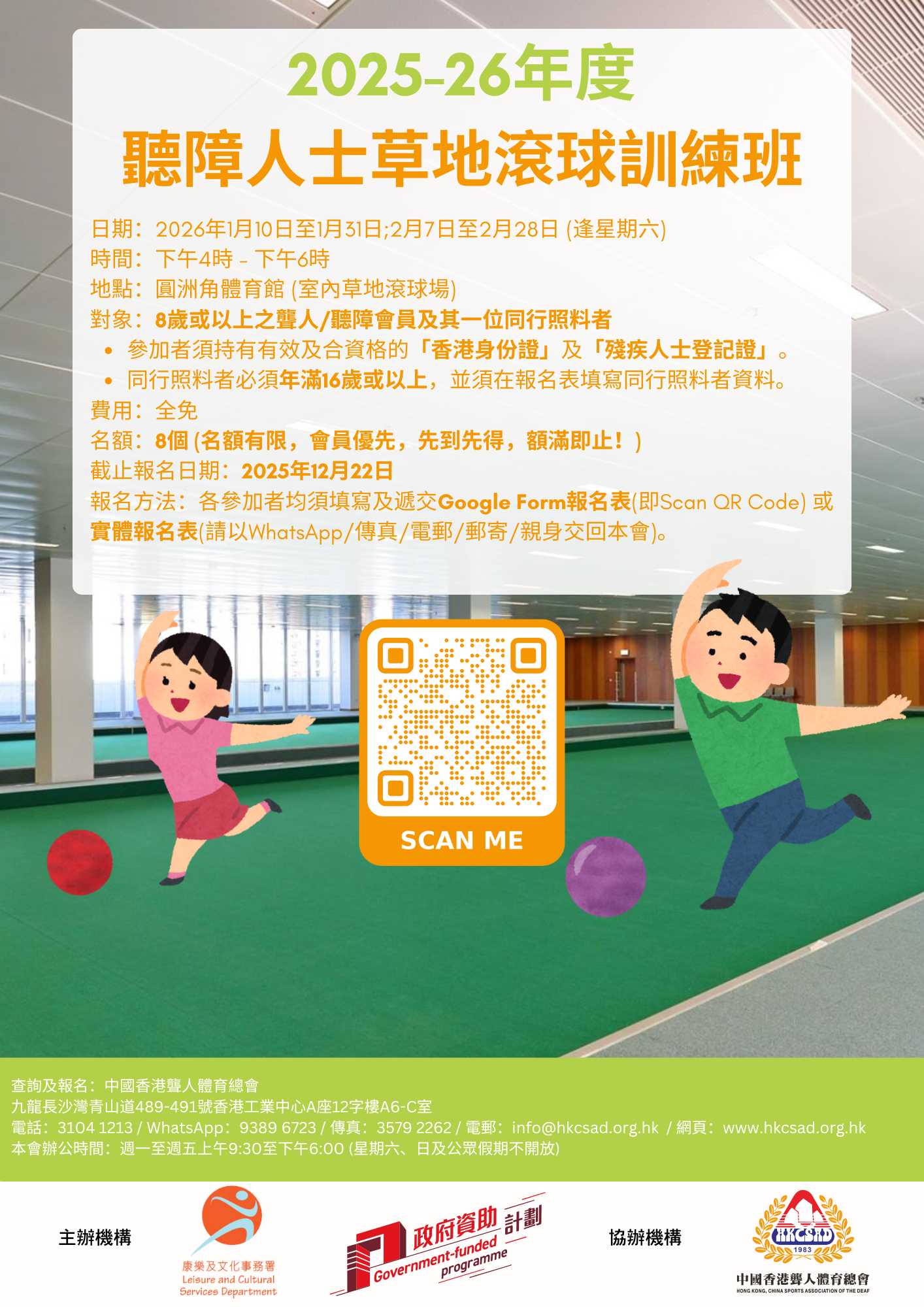 【已額滿】2025-26年度《聽障人士草地滾球訓練班》