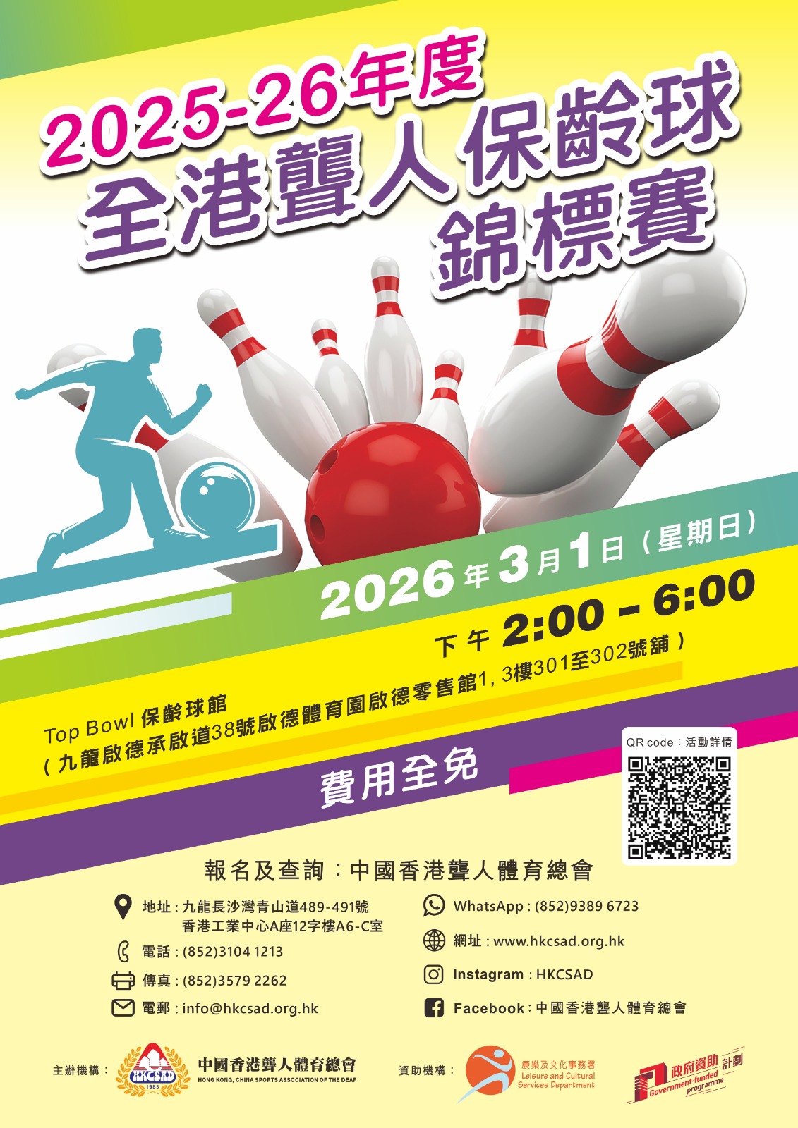 由中國香港聾人體育總會主辦,康樂及文化事務署資助之「2025-26年度全港聾人保齡球錦標賽」